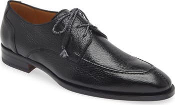 Textured leather and an apron toe lend contemporary intrigue to a sophisticated derby grounded by a cushioned footbed for lasting comfort.