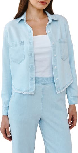 This breezy chambray shirt features a lightly cropped length, a frayed shirttail hem and a relaxed fit that's perfectly chic on its own or as an outer layer.