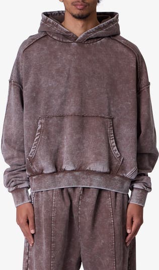 Exposed seams and an acid-washed finish bring an edgy aesthetic and worn-in, vintage look to this roomy hoodie made from soft cotton fleece.