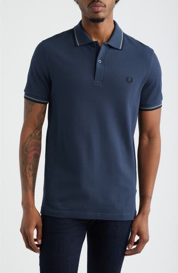 A classic twin-tipped collar and cuffs define a soft, trim-fitting piqué cotton polo with Fred Perry's quintessential mod style.