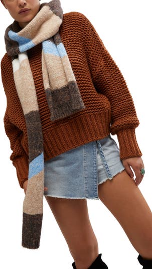Add a fun dose of color to your cold-weather wardrobe with this colorblocked scarf enriched with wool for extra warmth.
