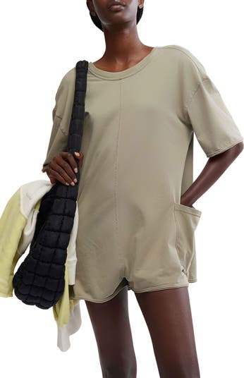 This soft, relaxed-fit romper is an all-in-one piece that gives you the look of your favorite oversized tee.