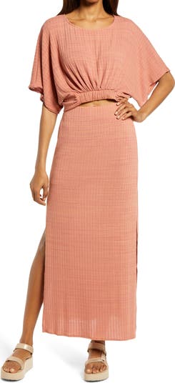 Comfort and ease rule your world, and this batwing-sleeve crop top and deep-slit maxi skirt outfit you for maximum bliss and style points.