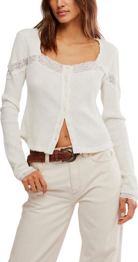 Lovely lace and softly textured cotton create this easy cardigan that's perfect for layering.