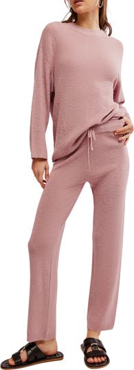 Lounge all day long in this matching sweater and pants set knit from a breathable cotton-blend yarn.
