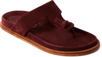 A pronounced toe post offers a secure fit on a supple suede flip flop grounded by a cushioned footbed for comfortable weekend-ready wear.