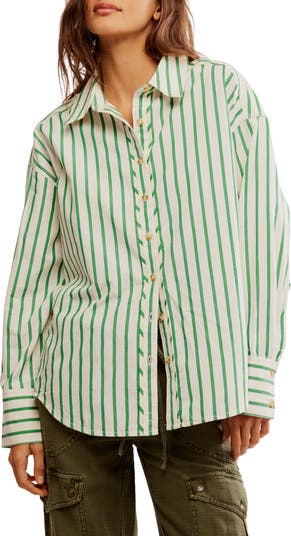 The simplicity of stripes keeps things classic and sweet on this oversized button-up shirt cut from lightweight cotton poplin.