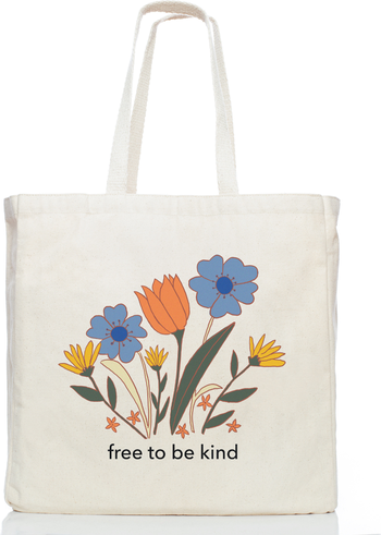 Details: Manufactured in a fair trade factory in India with fairtrade certified, organic cotton Artwork printed with water-based, eco-friendly inks Sturdy cotton canvas (1" thick) handles Exclusively designed by our co-founder Fay A. Grant Interior water bottle pocket & cell phone pocket Ships in 3-5 business days. 10% of the profits from your purchase will be donated to fight human trafficking and support educational opportunities for survivors of trafficking. Measurements: 16" x 16" x 5.5" Interior Cell Phone Pocket: 8" x 8" Interior Water Bottle Pocket: 5.5" x 11"