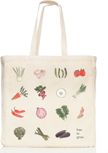 Details: Manufactured in a fair trade factory in India with fairtrade certified, organic cotton Exclusively designed by our co-founder Fay A. Grant Artwork printed with water-based, eco-friendly inks Sturdy cotton canvas (1" thick) handles Interior water bottle pocket & cell phone pocket Ships in 3-5 business days. 10% of the profits from your purchase will be donated to fight human trafficking and support educational opportunities for survivors of trafficking. Measurements: 16" x 16" x 5.5" Interior Cell Phone Pocket: 8" x 8" Interior Water Bottle Pocket: 5.5" x 11"