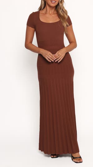 A pleated skirt adds a flowy feel to this soft and stretchy dress cinched with wider ribbing at the waist.