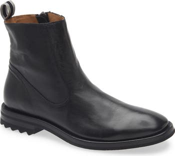 Smooth leather adds refined charm to a dapper zip-up boot furnished with an easy-on heel loop and grippy tread.