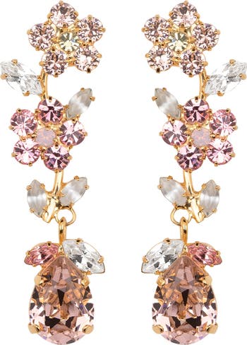 Bring a floral glow to your lobes with these blossoming drop earrings featuring Austrian crystals and 18-karat-gold plating.