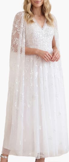 Freesia Shimmer Cape Sleeve Ankle Gown