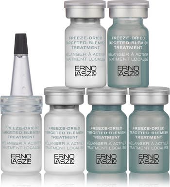 How to use: Pour one liquid vial (green) into one powder vial (white). Seal the vial and shake to mix until powder has dissolved. Gently squeeze one droplet onto your fingertip, then lightly press onto the blemished area. If desired, add a second layer. For best results, store the mixed bottle in the refrigerator and use within 7 days for optimal potency. Can be used to target blemishes on the face, neck and décolletage.