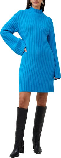 Lovely and soft to the touch, this ribbed sweater-dress with an elegant mock neckline is a mainstay for cool-season layering.