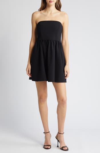 Every closet craves this LBD designed in a strapless silhouette with a flouncy flared skirt.