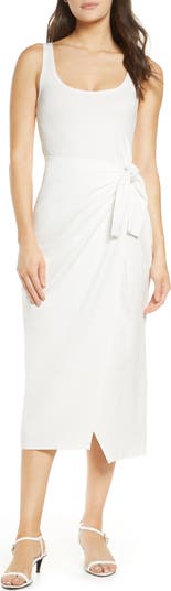 A drapey side tie cinches the waist of this sleeveless midi crafted from a stretch-cotton blend.