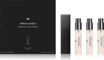 What it is: A set of three travel-size French Defense Extrait de Parfums from MIND GAMES, plus a refillable zamack atomizer.