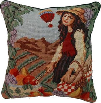 Living up the living room with our French Harvest Girl Needlepoint Pillow. We have designed these pillows to be used as bedding accessories, couch or sofa throw pillows, or used in any place where you need a extra touch of comfort. They are perfect for your home or as a gift for a friend or loved one. Get excited for decorating with them with each upcoming season.