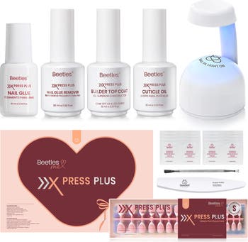 X Press Kit Gel Nail Kit, Press On Nails Short Almond Kit with 224Pcs French Nail Tips Nail Glue & Remover Builder Top Coat Mini Nail Lamp All-in-One DIY Nail Kit Gift