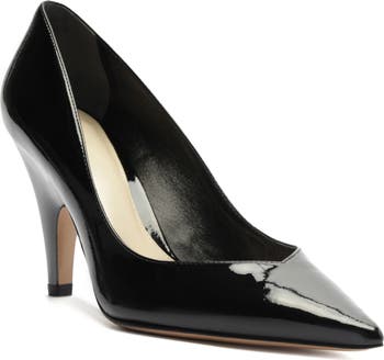 This refined, pointy-toe pump is meticulously sculpted from patent leather to highlight every contour of the silhouette, from the artfully curved heel to the tailored V-topline.