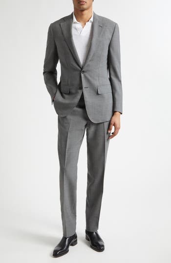 This tailored suit is made from open-weave wool that's lightweight and breathable, making it an ideal addition to your warm-weather business wardrobe. Notched lapels and flat-front trousers complete the effortlessly versatile look.