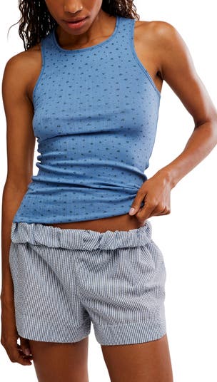 Pretty pointelle and baby blooms sweeten a fitted tank made from stretch-kissed cotton.