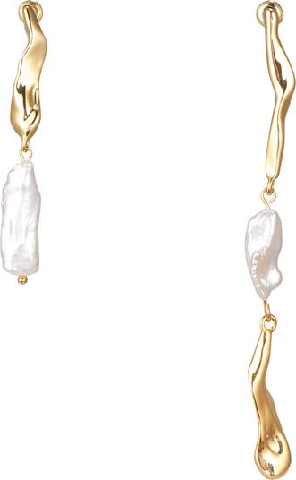 Freshwater Baroque Pearl Asymmetrical Molten Drop Earrings