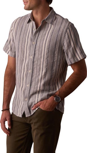 Subtle textured stripes bring low-key depth and dimension that won't overwhelm your look when you build it around this cotton shirt.