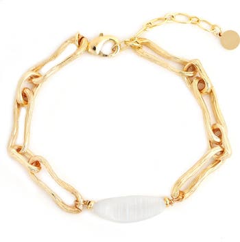 An organic freshwater pearl brings refined luster to an elegant chain link bracelet plated in 14-karat gold.