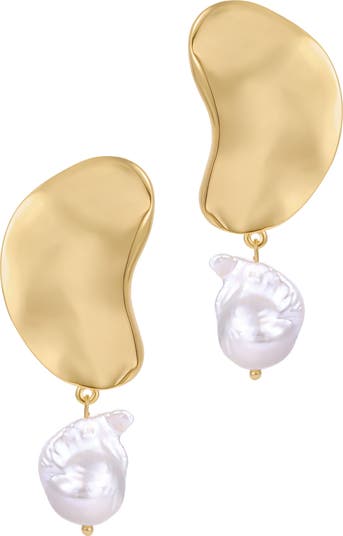 Lustrous freshwater pearls dangle from molten, light-reflecting anchors in these drop earrings that exude organic beauty.