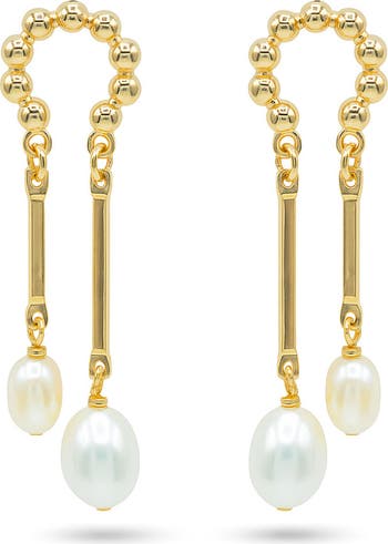 Freshwater-pearl drops delicately swing with every turn of your head on these luxe earrings finished in a high polished that catches the light from every angle.