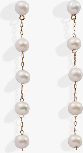 Add a luminous touch to any look with these Freshwater Pearl Drop Earrings. They feature five genuine freshwater pearls on each post earring, dangling from a delicate gold-tone chain. Wear them for an unmatched glow.