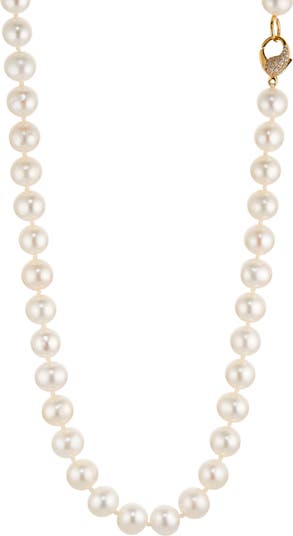 Iridescent freshwater pearls shimmer all around this hand-polished necklace secured with a sparkly, pavé cubic zirconia clasp.