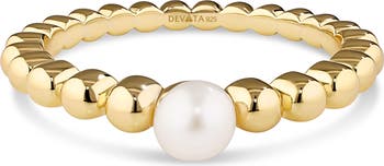 Freshwater Pearl on Beaded Ball Ring in Gold Plated Sterling Silver