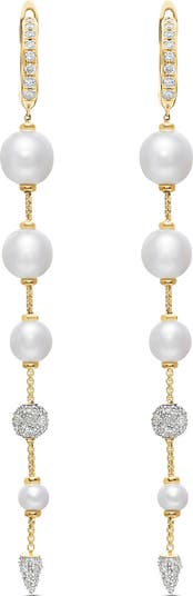 18-karat gold with freshwater pearls and diamonds. Pearl size: 4–8mm. Total diamond weight: 0.60ct. Earrings, 3.13" drop. Imported.