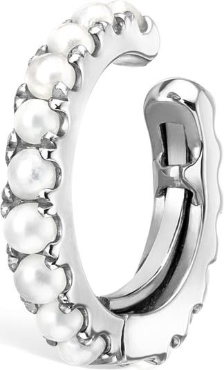 Inspired by the brand's signature eternity rings, this 14-karat-gold cuff offers a timeless freshwater pearl look without the commitment of a piercing. A comfortable hinge mechanism offers a snug fit designed for long-lasting wear.