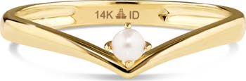 DEVATA freshwater pearl wishbone ring crafted in solid 14K yellow gold.