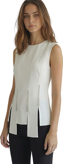 The Freya Crystal Embellished Top showcases intricate crystal detailing that catches light with every movement, elevating your everyday wardrobe. Its asymmetric hem and strategic side slit create a refined silhouette that transitions effortlessly. A versatile statement piece. Made in Europe. Pairs well with our Isla pants in black.