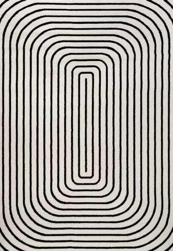 The tone-on-tone pattern of our modern rug is inspired by minimalist Scandinavian designs. Soft polypropylene fibers are woven into textured stripes with arched corners, in a high-low pile that accentuates the pattern. Designed for easy care and everyday life, this indoor rug is perfect for the living room, dining room, or entryway.
