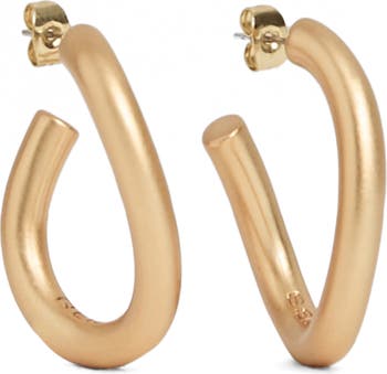 A wavy silhouette gives sculptural modernity to these golden hoop earrings.
