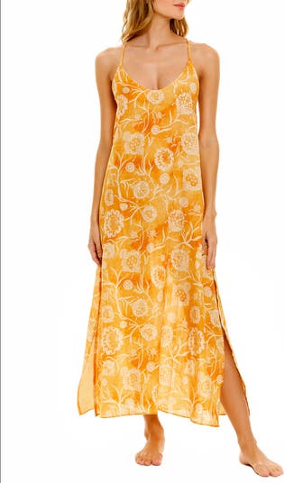 A dreamy floral print covers a breezy linen nightgown featuring crossback straps and a long silhouette that's perfectly chic for daytime too.