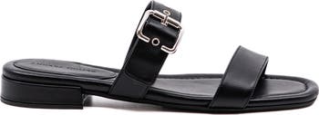 A minimalist slide sandal featuring two sleek straps and an adjustable buckle for a customized fit with a lightly padded sole for all-day comfort.