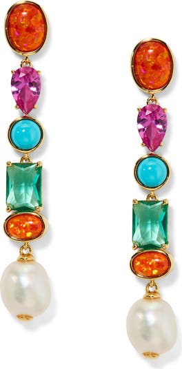 Let your look vibrantly shine with these drop earrings designed with colorful mixed-cut cubic zirconia and freshwater pearls.