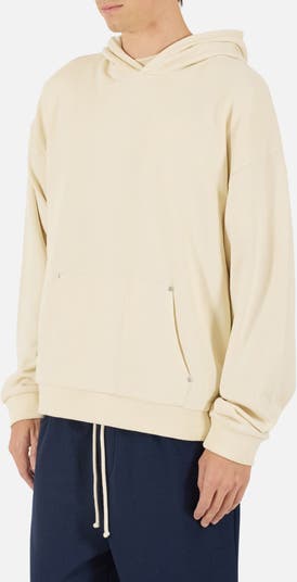 A relaxed fit keeps you feeling casual in this comfortable cotton-blend hoodie made of supersoft terry.