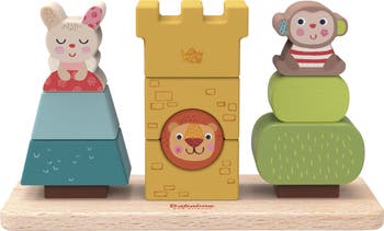 Stack, build, imagine! This wooden stacking toy develops dexterity, problem-solving, and coordination while combining Montessori-inspired benefits with story-rich, sensory play. Toddlers stack uniquely shaped wooden blocks to create engaging character forms, exploring size, shape, and balance with every layer. Varying textures promote tactile discovery, while stacking challenges strengthen fine motor skills and spatial reasoning. Designed for open-ended exploration, it encourages early learning through movement, creativity, and concentration. A PlayTales™ card is included, featuring a unique story and matching activities written just for this product. Crafted from durable, high-quality materials for lasting play.