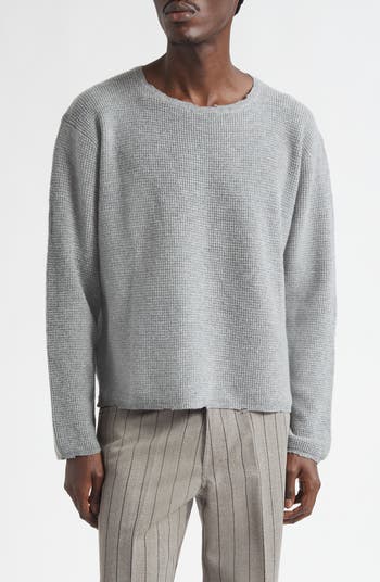 Dialed to the brand’s streetwise code, this waffle-stitch sweater leans subversive with nibbled edges that read lived-in by design. The plush wool-cashmere knit carries a soft halo and easy warmth that tempers the grit with a luxe feel.