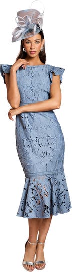 This stunning lace dress from Coast is a masterpiece of elegance and sophistication. The intricate floral lace overlay adds a luxurious texture, while the frill sleeves introduce a delightful touch of whimsy. The fitted bodice smoothly transitions into a flute hem, creating a figure-flattering silhouette that's sure to turn heads. Ideal for weddings, race days, or any upscale event, this dress radiates refinement.