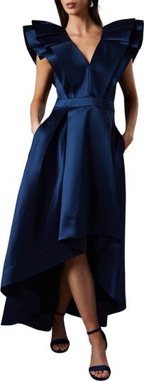 Exquisite frill sleeves add a touch of drama to this elegant midi dress. Flattering v-neckline elongates the silhouette. Crafted from twill fabric for a luxurious look and feel. Dipped hem creates a striking asymmetric finish. Concealed back zip fastening for a seamless fit. Radiate sophistication at your next formal event in this stunning midi dress from coast. The frill sleeves and v-neckline exude a refined femininity, while the dipped hem adds a contemporary twist.