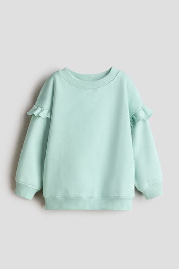 Top in lightweight sweatshirt fabric with a soft brushed inside. Round, rib-trimmed neckline, dropped shoulders with frills and long sleeves. Ribbed cuffs and hem.